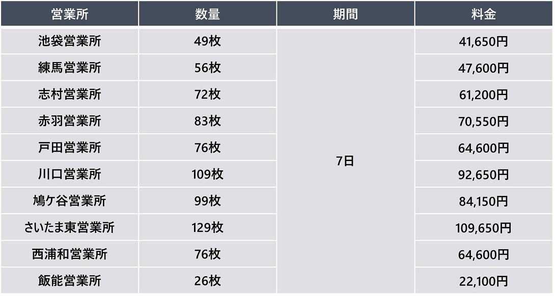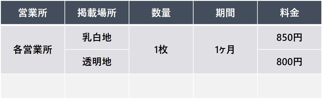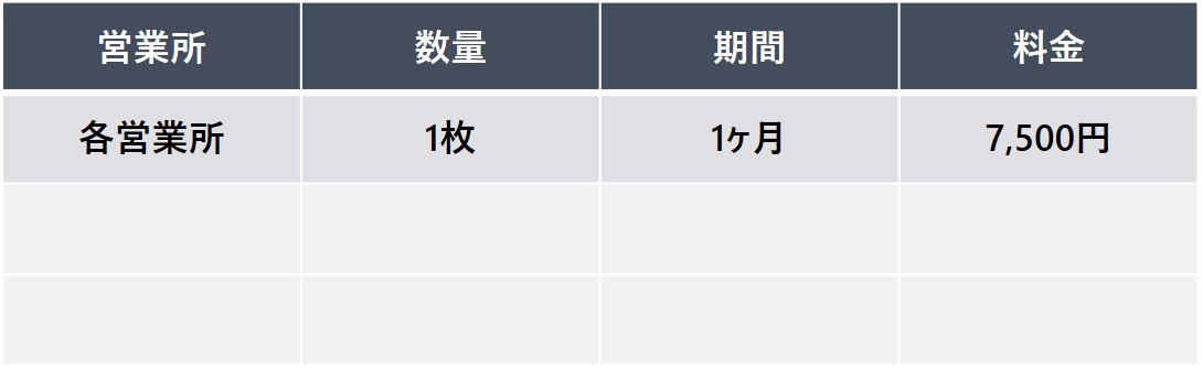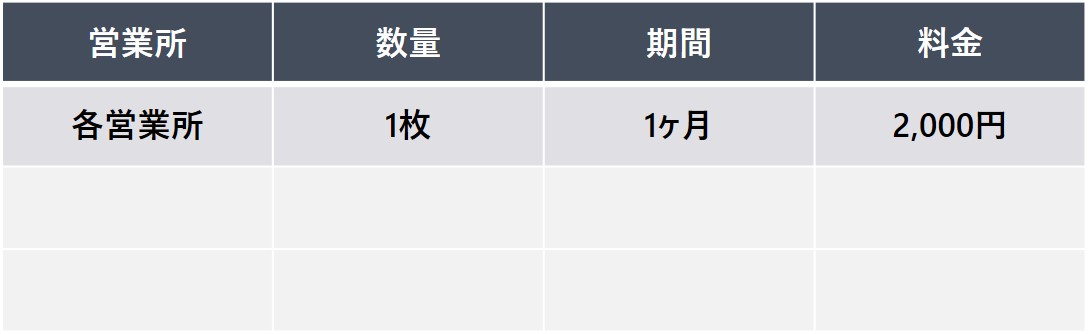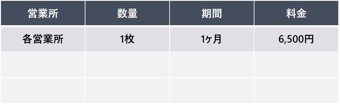 【申込単位】 20枚以上 / 6ヶ月以上 / 営業所指定可能