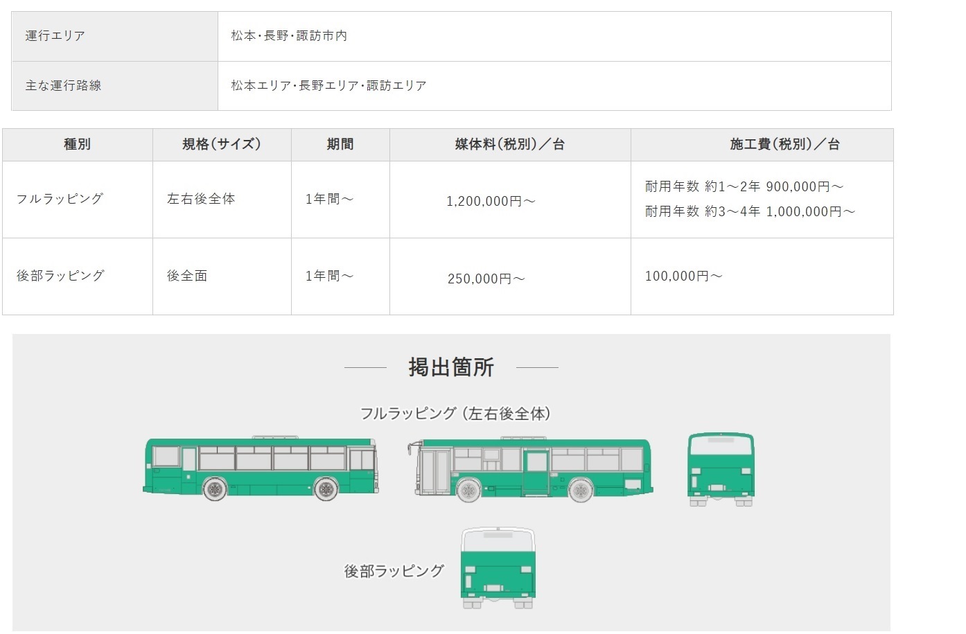 バス車体に掲載するラッピング広告や車内のポスター広告など、