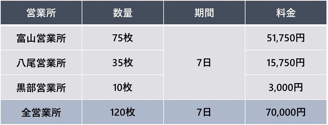 【サイズ】 両側面(片面あたり:H750㎜×W3500㎜)