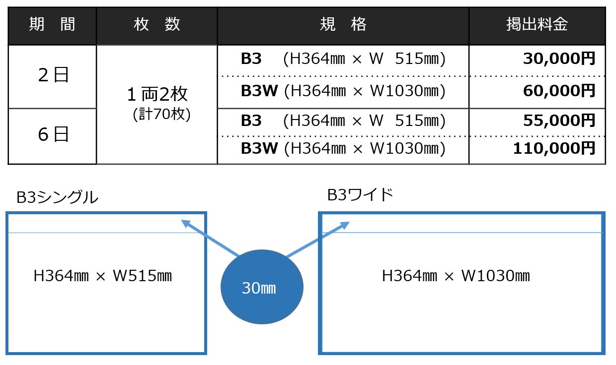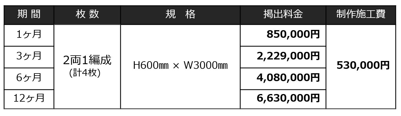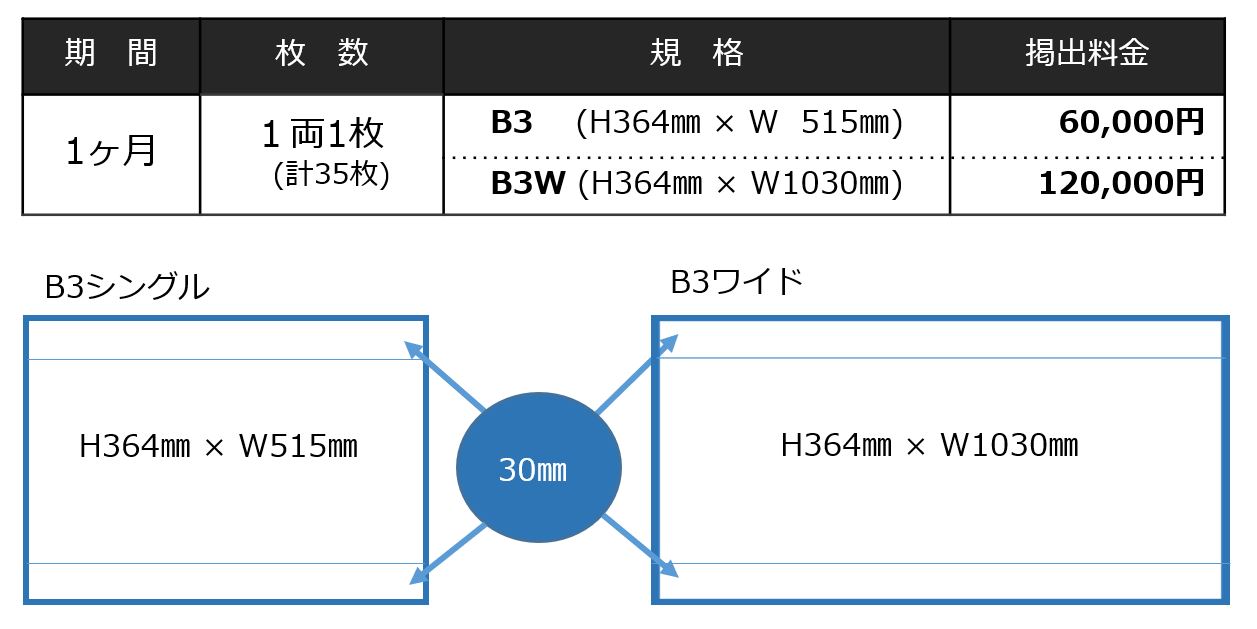 1ヶ月単位の長期掲出で、商品やサービス情報などを浸透させることに効果的です。