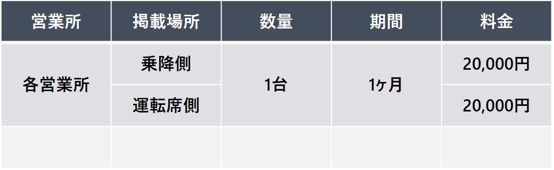 運転席側の車体側面に掲出する広告。 歩行者やドライバーに対して繰り返し効果的な訴求ができます。