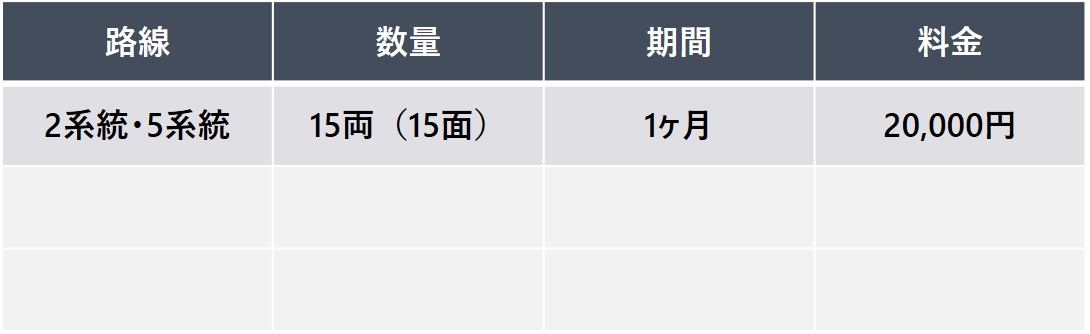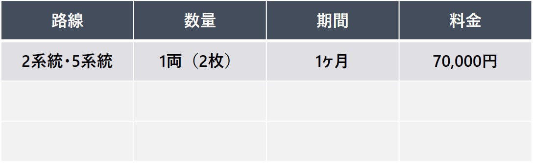 車体側面に掲出する広告媒体です。 乗客や歩行者・ドライバーに対して強い印象を与えることができます。