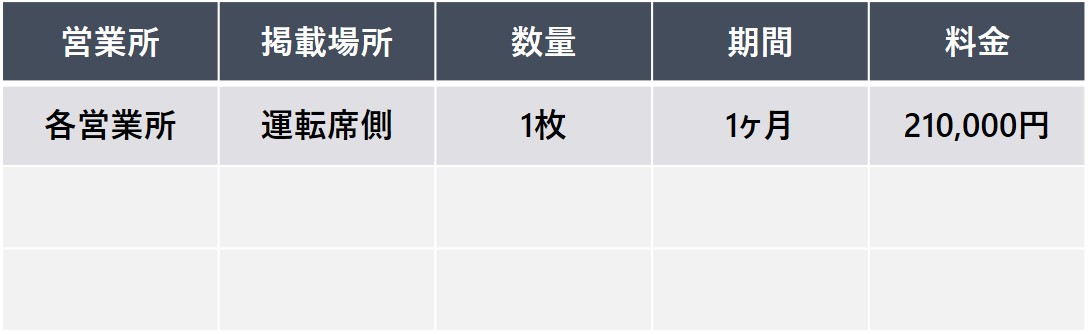 運転席側の車体側面に掲出する広告。 歩行者やドライバーに対して繰り返し効果的な訴求ができます。