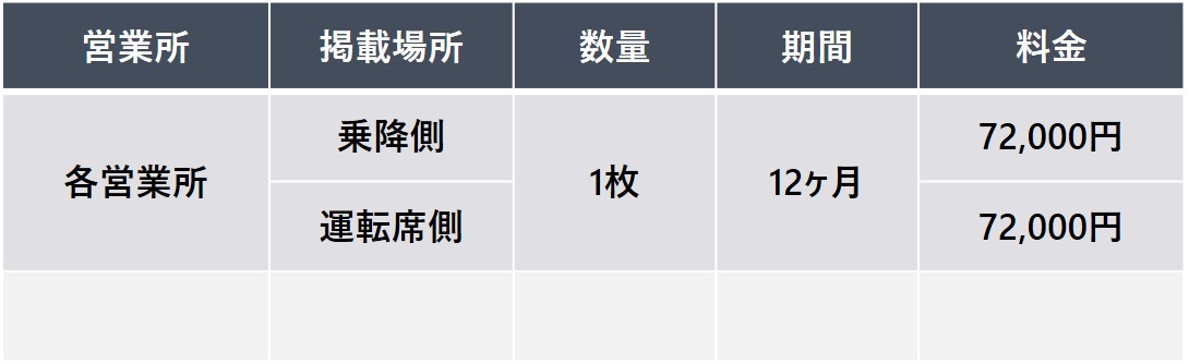 運転席側の車体側面に掲出する広告。 歩行者やドライバーに対して繰り返し効果的な訴求ができます。