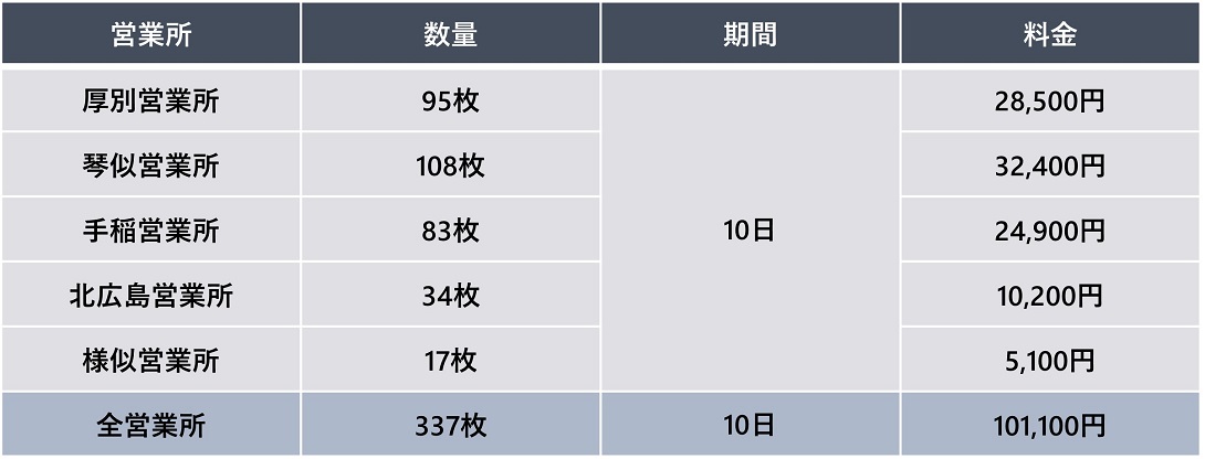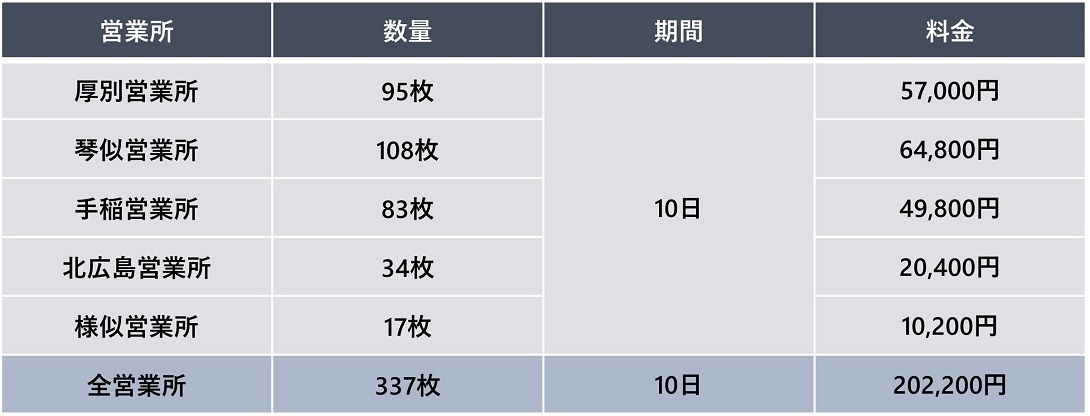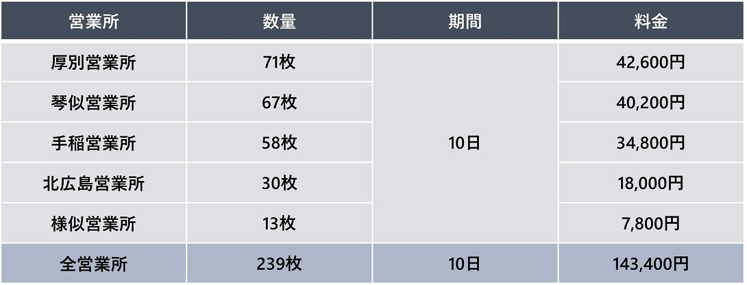 フルラッピングに比べ、リーズナブルにインパクトの大きい広告を掲出できる媒体。 複数台の掲出により広いエリアで効率的な広告効果が期待できます。