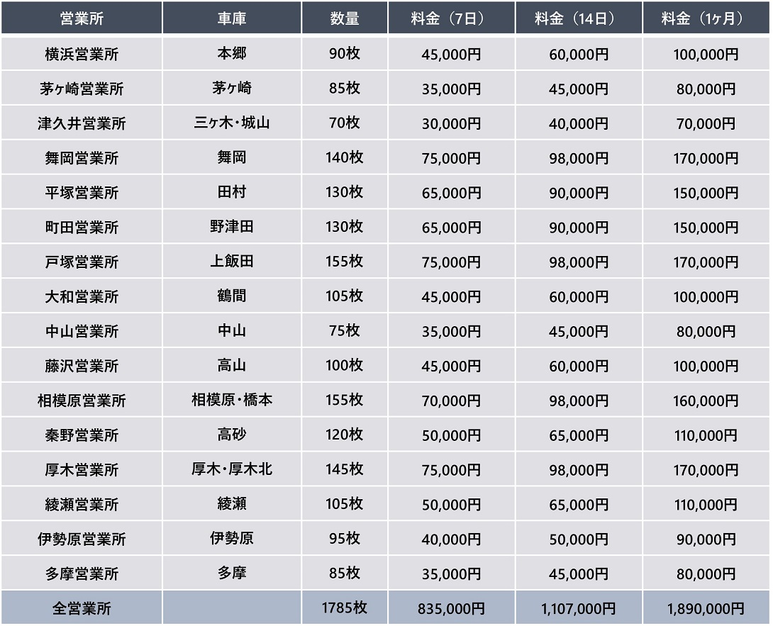約2000台の車両台数は日本最大規模。
