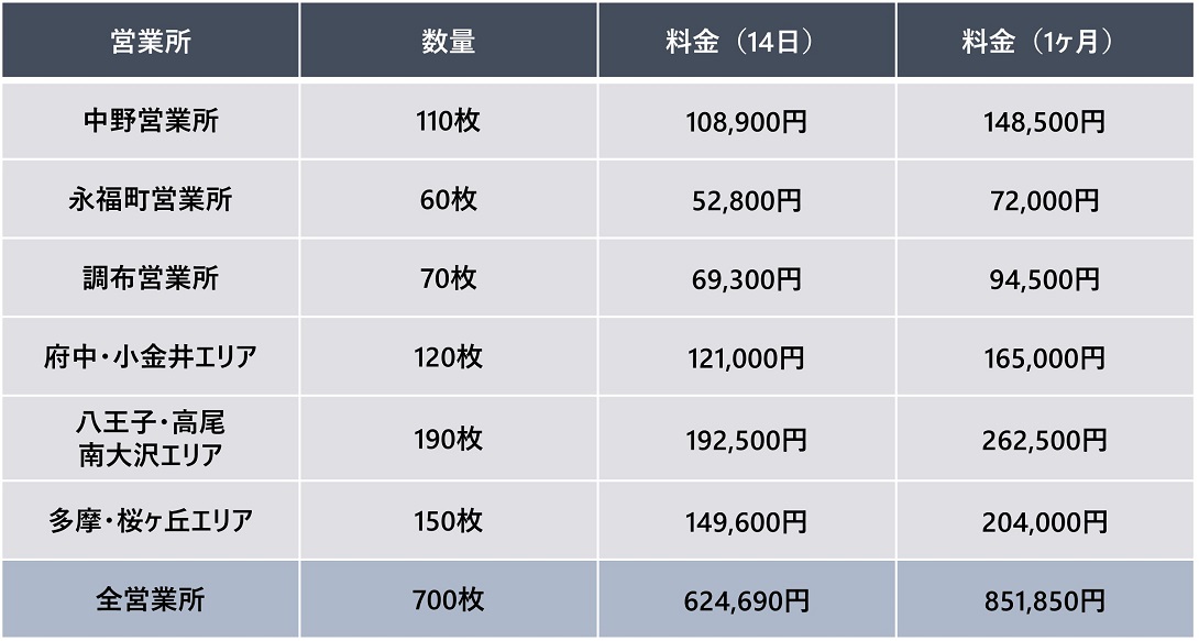 フルラッピングに比べ、リーズナブルにインパクトの大きい広告を掲出できる媒体。 複数台の掲出により広いエリアで効率的な広告効果が期待できます。