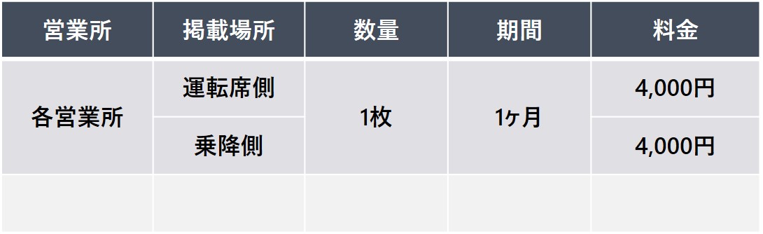 車両後部窓ガラスに大型シートを掲出する広告で、歩行者やドライバーに対して強い印象を与えることができます。