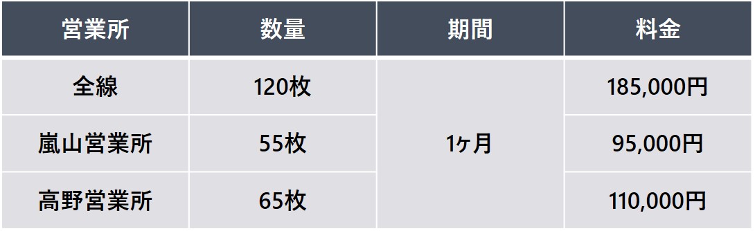 車体を特殊なシートでラッピングする広告媒体です。 路線を繰り返し運行することで強い印象を与え、高い広告効果が得られます。