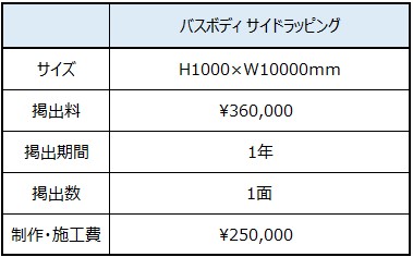 対向車線のドライバーへの訴求に適した、車道側バス側面の大型看板です。大型ビジュアルで注目度も高く、バスの乗客だけでなく歩行者やドライバーに対しても効果的な媒体です。