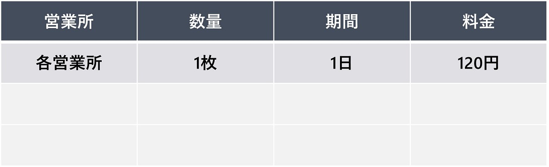 【申込単位】 1枚単位 / 10日以上 / 営業所指定可能