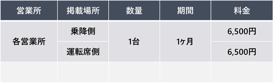 注目度の高い運転席の後部に掲出されます。座席が前向きなので座っている方からの視認性に優れた媒体です。