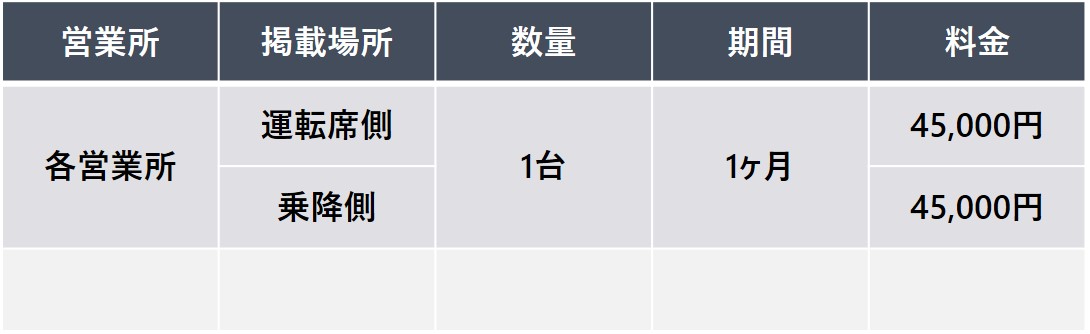 原状復帰費:運転席側50,000円/台 乗降側60,000円/台