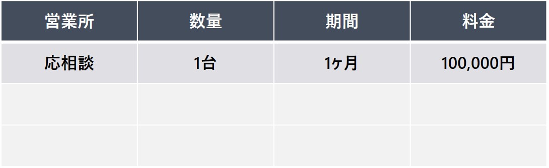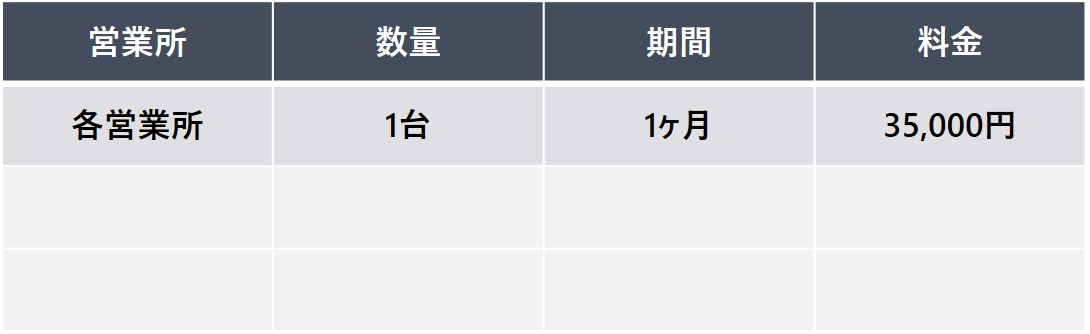12ヶ月未満のご契約の場合、原状復帰費が1台につき100,000円別途発生します