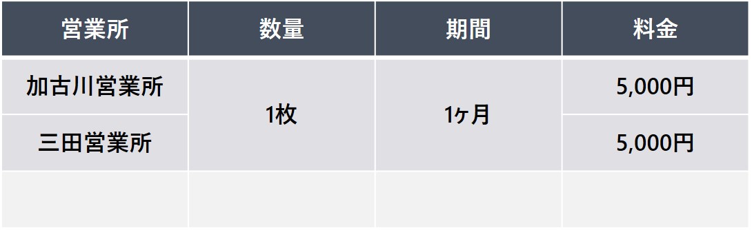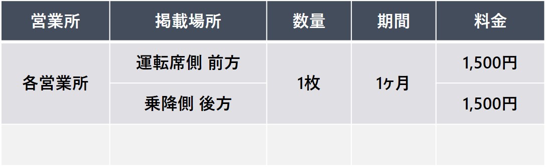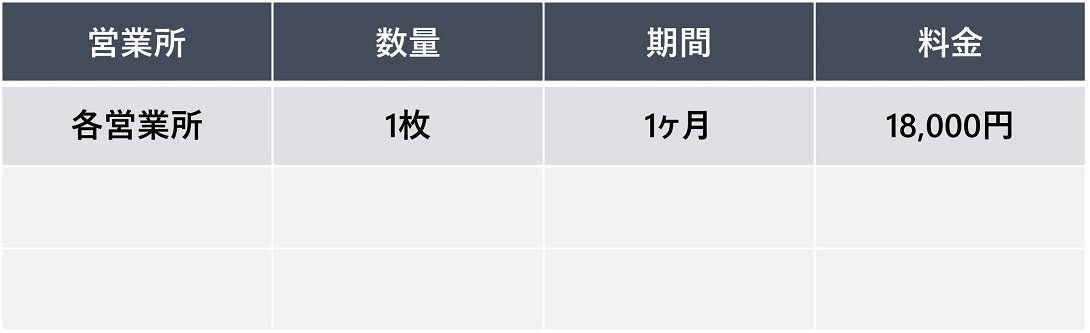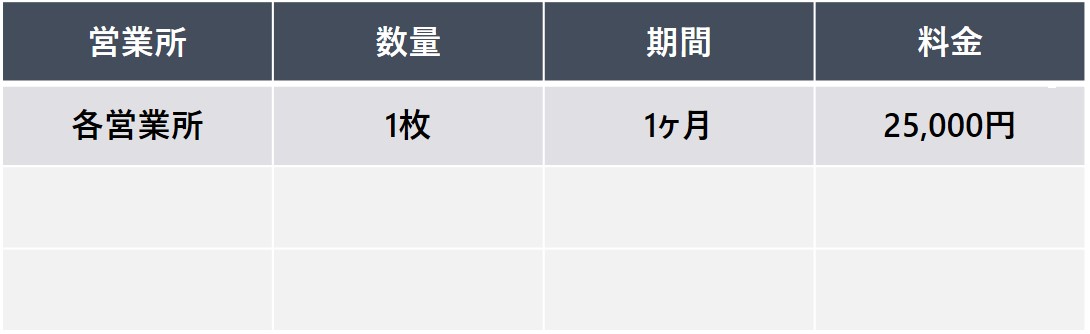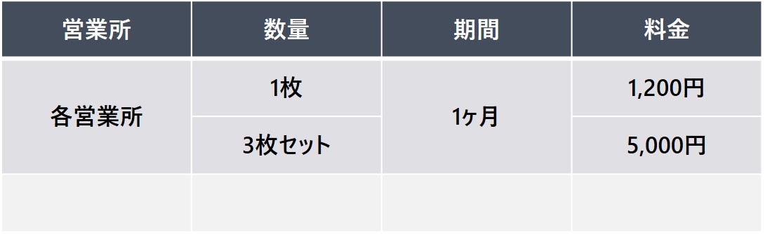 【申込単位】 1枚単位 or 枚数セット / 6ヶ月以上 / 営業所指定可能