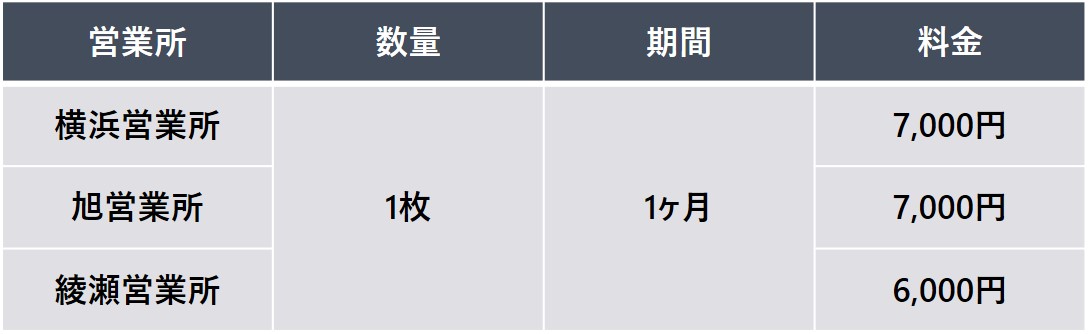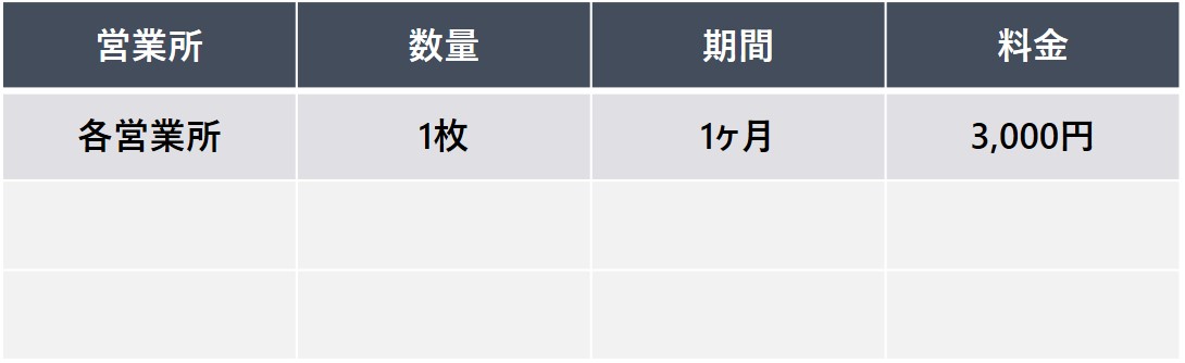 【申込単位】 10枚以上 / 6ヶ月以上 / 営業所指定可能