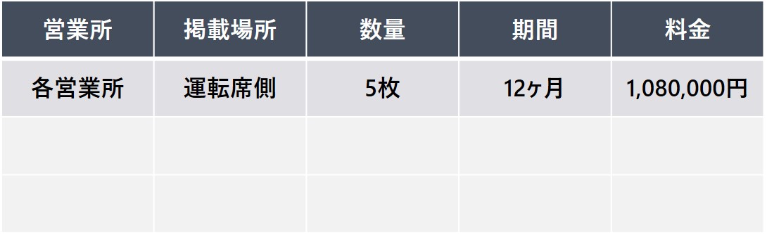 運転席側の車体側面に掲出する広告。 歩行者やドライバーに対して繰り返し効果的な訴求ができます。
