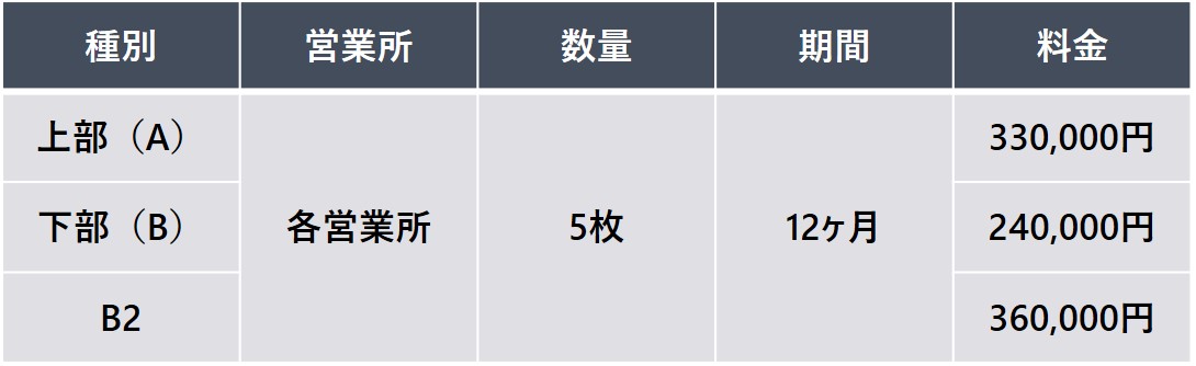 車体側面に大型シートを掲出する広告媒体です。 リーズナブルに歩行者やドライバーに対して強い印象を与えることができます。