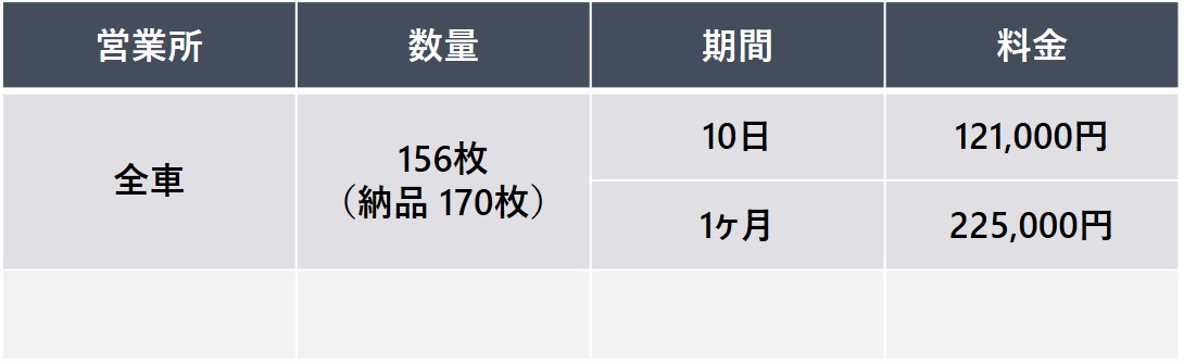 車両後部窓ガラスに掲出する帯状の広告で、歩行者やドライバーに対して繰り返し効果的な訴求ができます。
