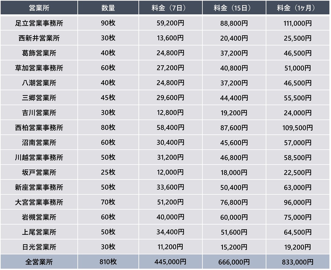 フルラッピングに比べ、リーズナブルにインパクトの大きい広告を掲出できる媒体。 複数台の掲出により広いエリアで効率的な広告効果が期待できます。