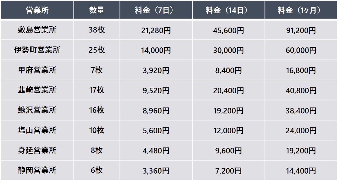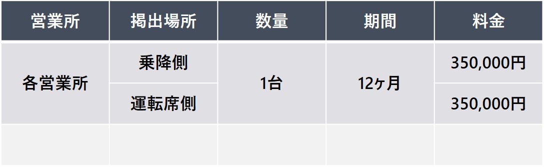 フルラッピングに比べ、リーズナブルにインパクトの大きい広告を掲出できる媒体。 複数台の掲出により広いエリアで効率的な広告効果が期待できます。