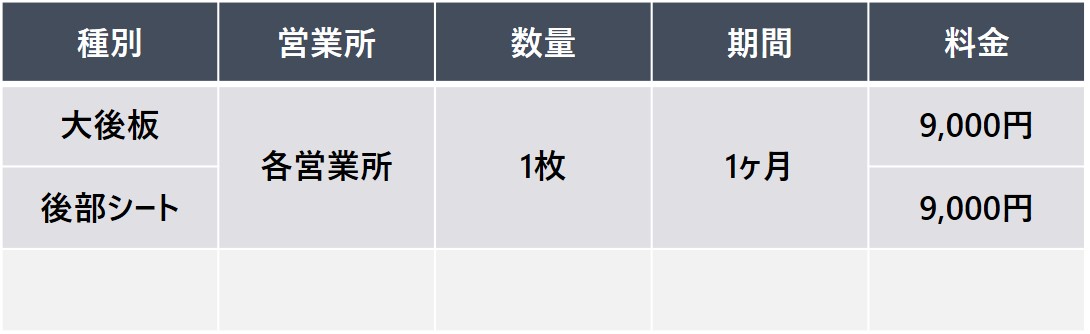 車両後部窓ガラスに掲出する広告で、歩行者やドライバーに対して繰り返し効果的な訴求ができます。